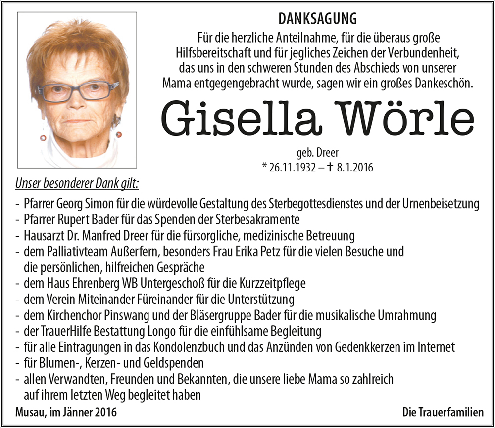 Zum Tode eurer lieben Mama entbieten wir euch unsere von Herzen kommende aufrichtige Anteilnahme!