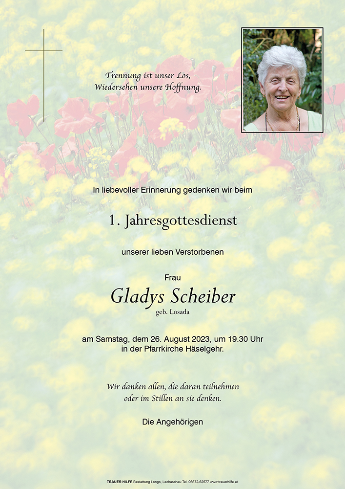 Kondolenzbuch für Gladys Scheiber
