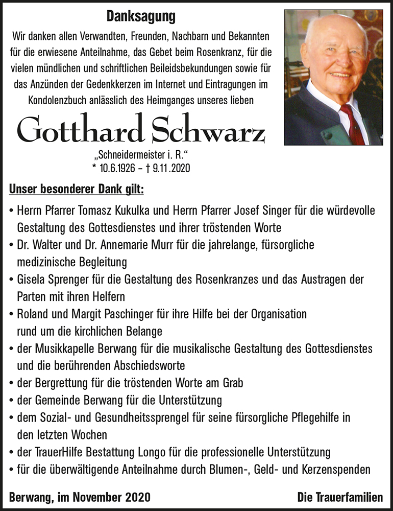 Kondolenzbuch für Gotthard Schwarz