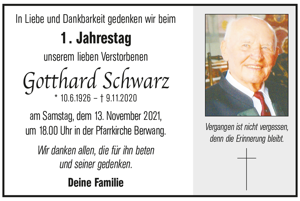 Gotthard, der immer da war ist nicht mehr und er fehlt nicht nur seiner Familie, seinen Angehörigen, seinen Bekannten, seinen Freunden, den Vereinen, den Stammtischkollegen er fehlt dem ganzen Dorf.