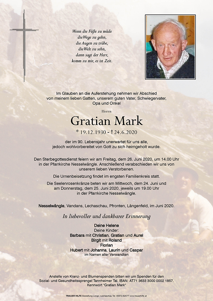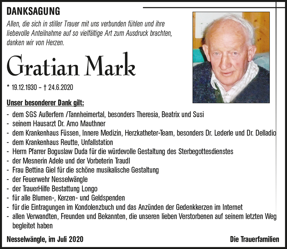 Kondolenzbuch für Gratian Mark