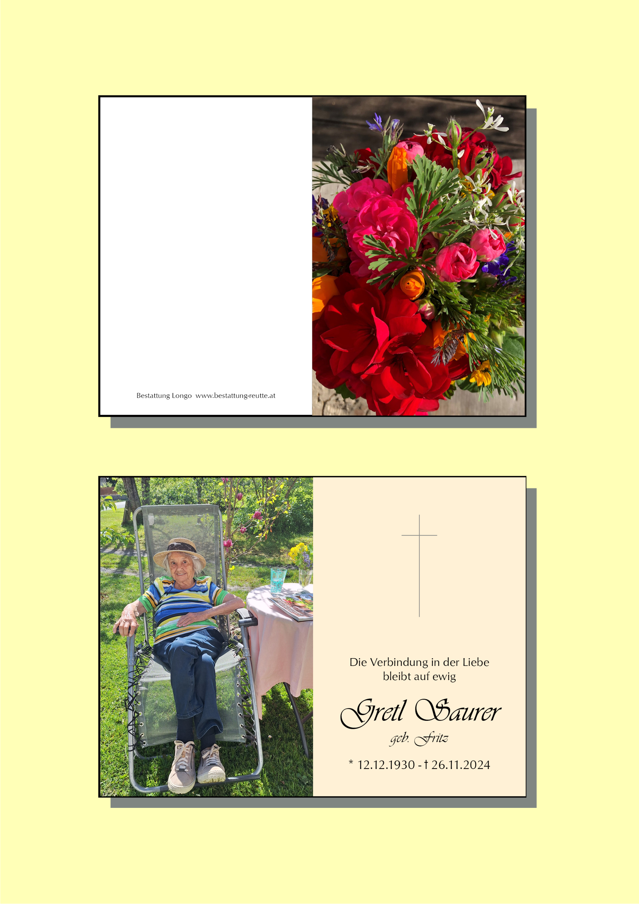 Zum Ableben von eurer Mutter und Oma möchten wir euch unser aufrichtiges Beileid und unser MitgefĂŒhl ausdrĂŒcken. Wir wĂŒnschen euch viel Kraft fĂŒr diese schweren Stunden.