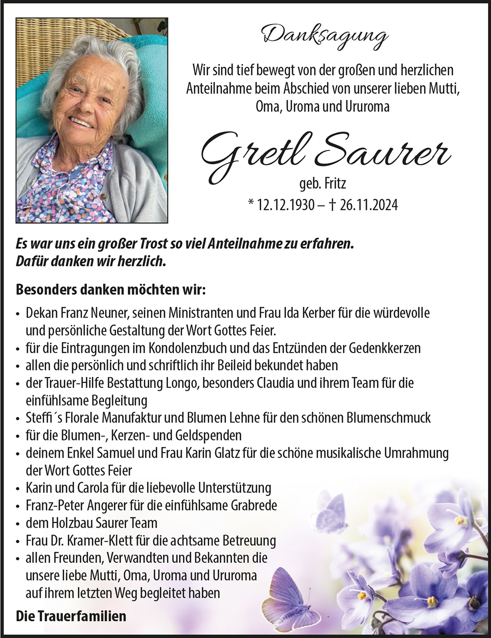 GeschÀtzte Trauerfamilie Saurer!