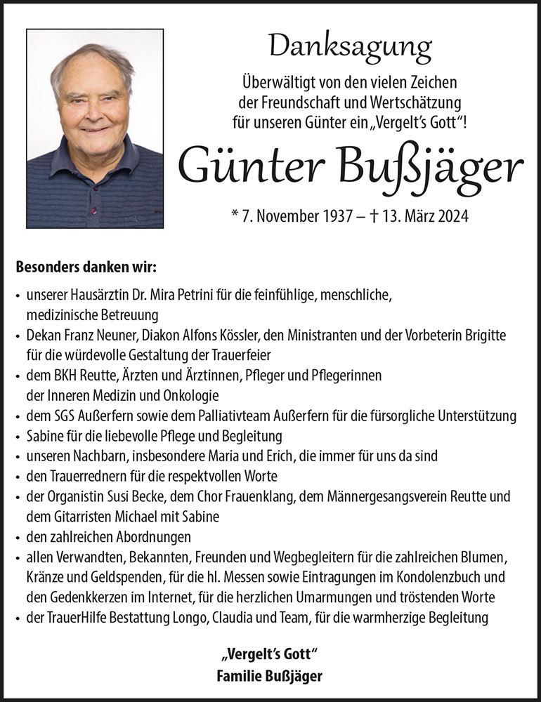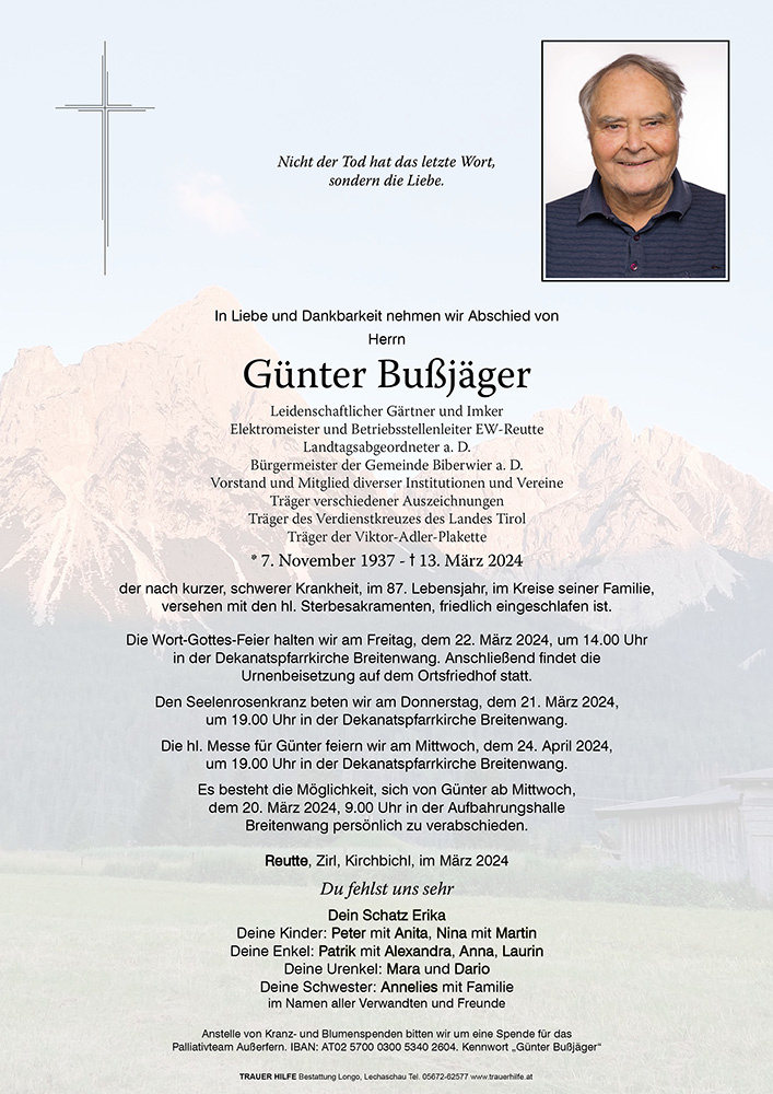Liebe Frau Bußjäger, lieber Peter, liebe Trauerfamilie,