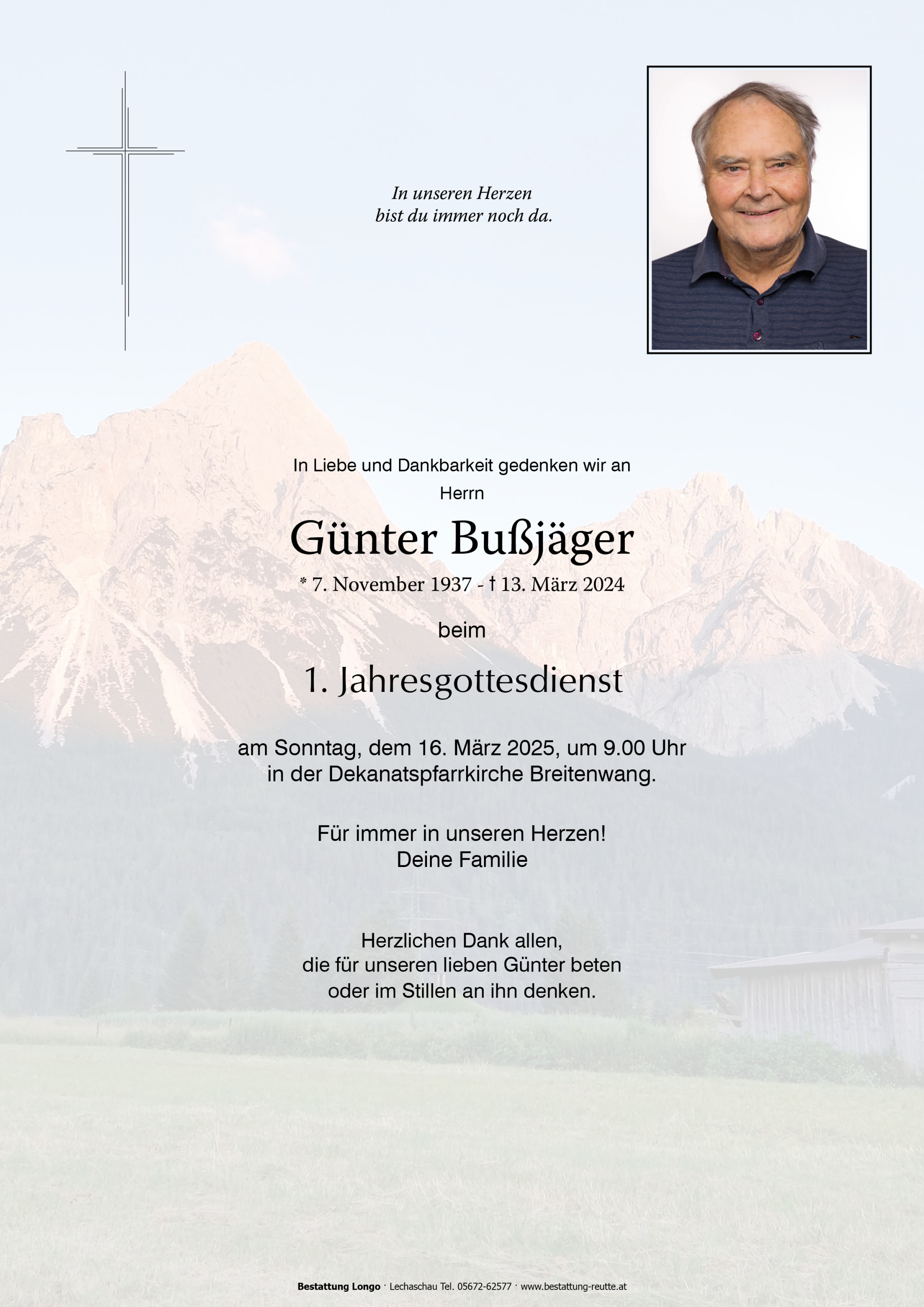 es ist noch nicht lange her, da traf ich Günter in der Bäckerei Holzmayr und wir hatten ein kurzes, aber sinniges Gespräch. Auch über die Zunftbruderschaft redeten wir und Günter entschuldigte sich dafür, dass er aufgrund seines Alters und Gesundheitszustandes heuer am 19. März bei der Bruderschaftsversammlung nicht dabei sein kann. Herzlich lachend verabschiedeten wir uns, nicht ahnend - ein letztes Mal - für immer. Bis zu seinem Ableben war Günter ein treues Mitglied der Zunftbruderschaft St. Josef zu Bichlbach. Sein Platz bleibt für immer leer und es ist eine Zeit der Stille, der Trauer und des Loslassens - in dankbarer Erinnerung. Wir werden ihm ein ehrendes Andenken bewahren. Unsere Gedanken sind in dieser nicht einfachen Zeit bei euch.