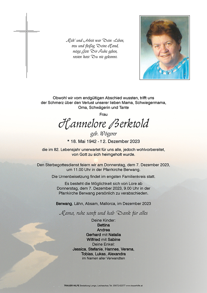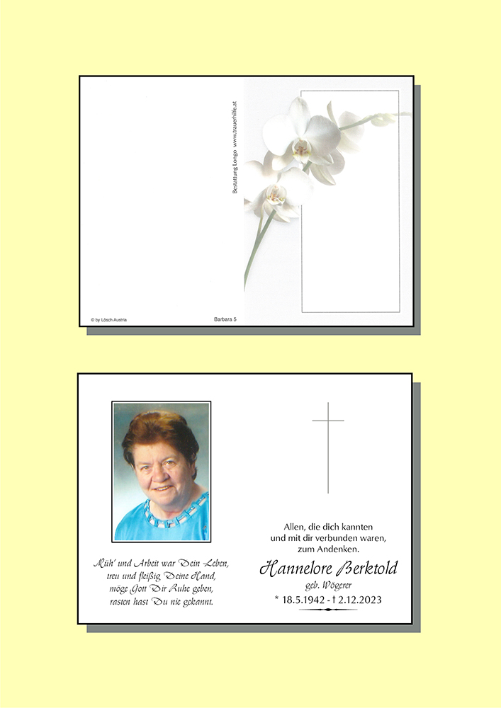 Kondolenzbuch fĂŒr Hannelore Berktold