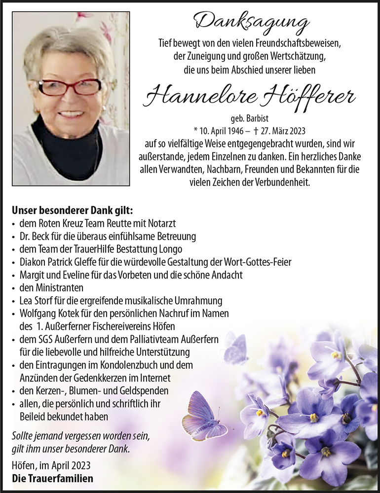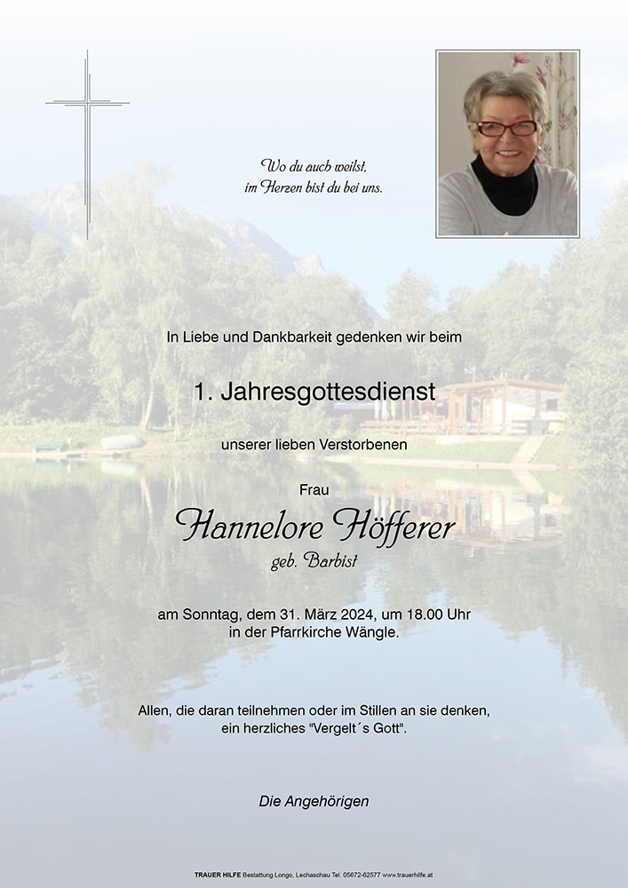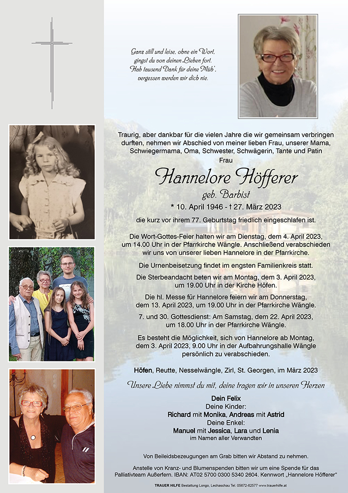 Kondolenzbuch für Hannelore Höfferer