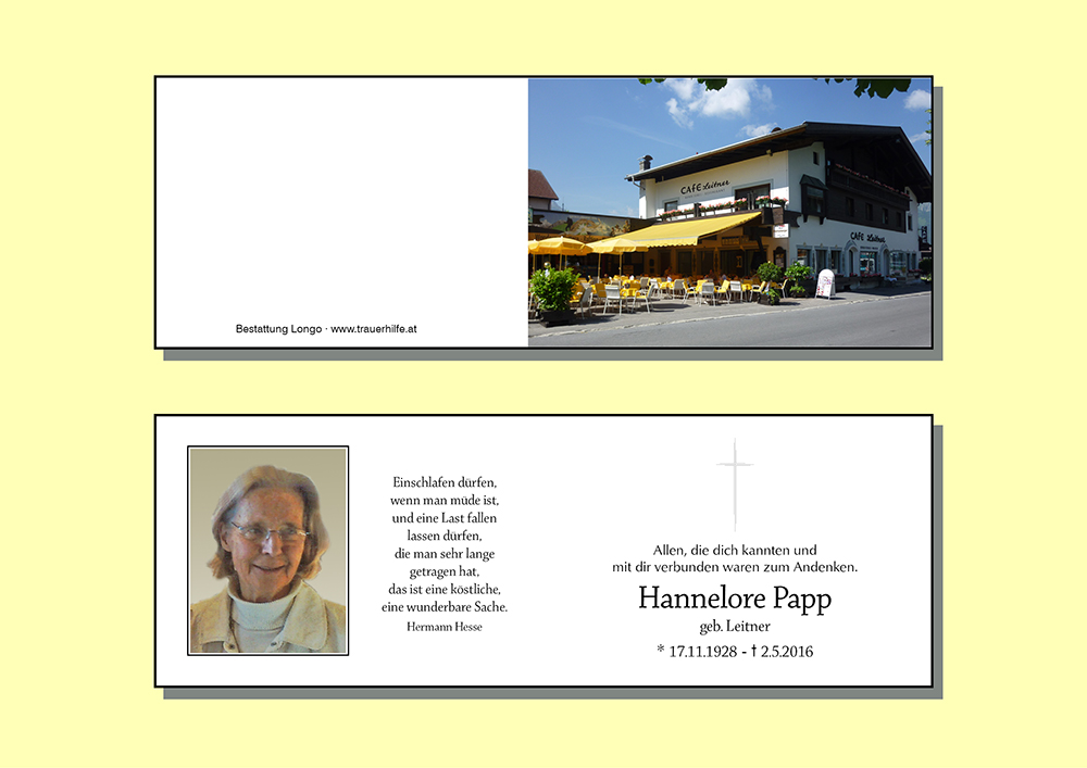 Kondolenzbuch für Hannelore Papp