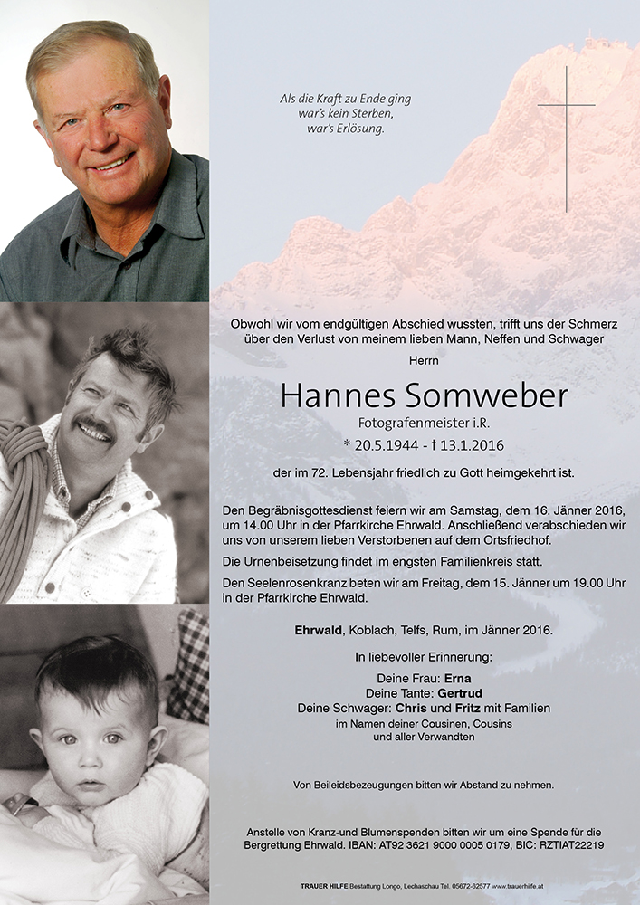 Kondolenzbuch für Hannes Somweber
