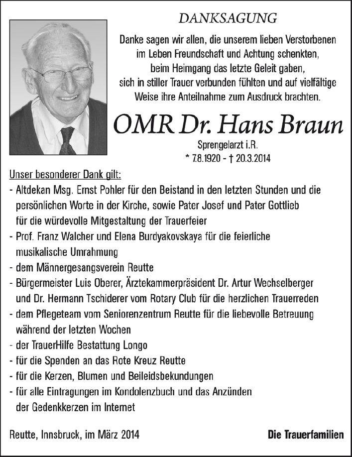 Nach einem erfüllten Leben ist Dr. Braun heimgegangen, und der Abschied ist schwer. Ich wünsche euch in dieser Zeit Kraft, Trost und Zuversicht!