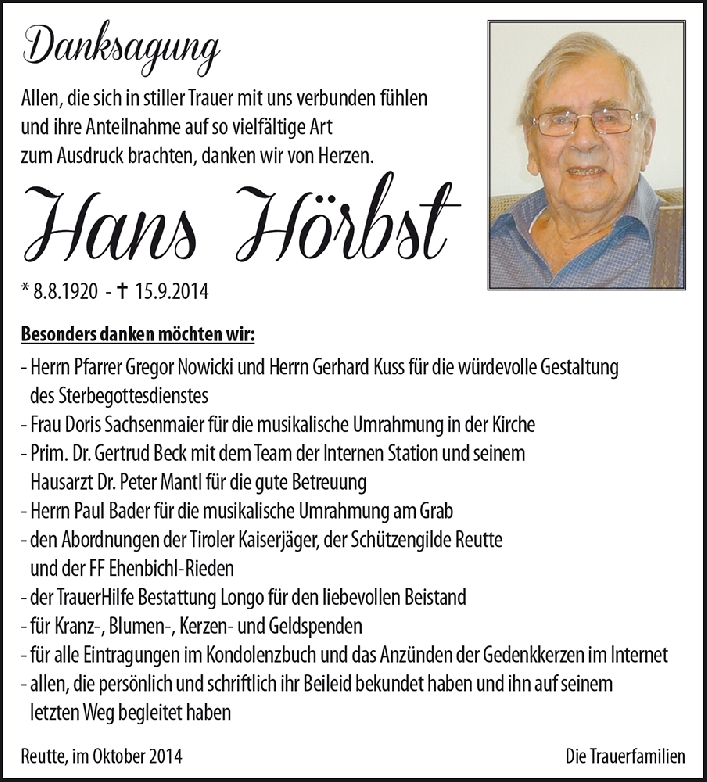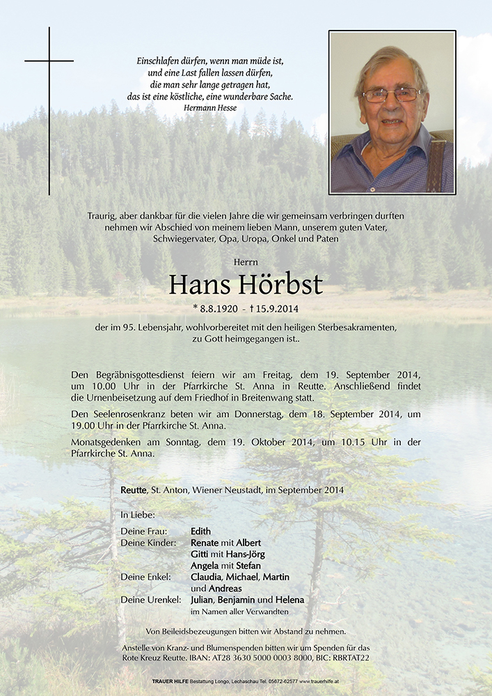 Kondolenzbuch für Hans Hörbst