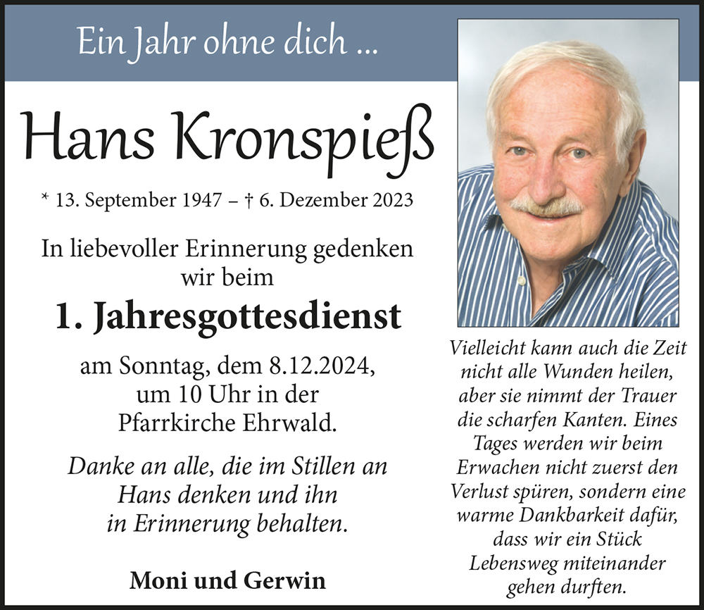 Kondolenzbuch für Hans Kronspieß