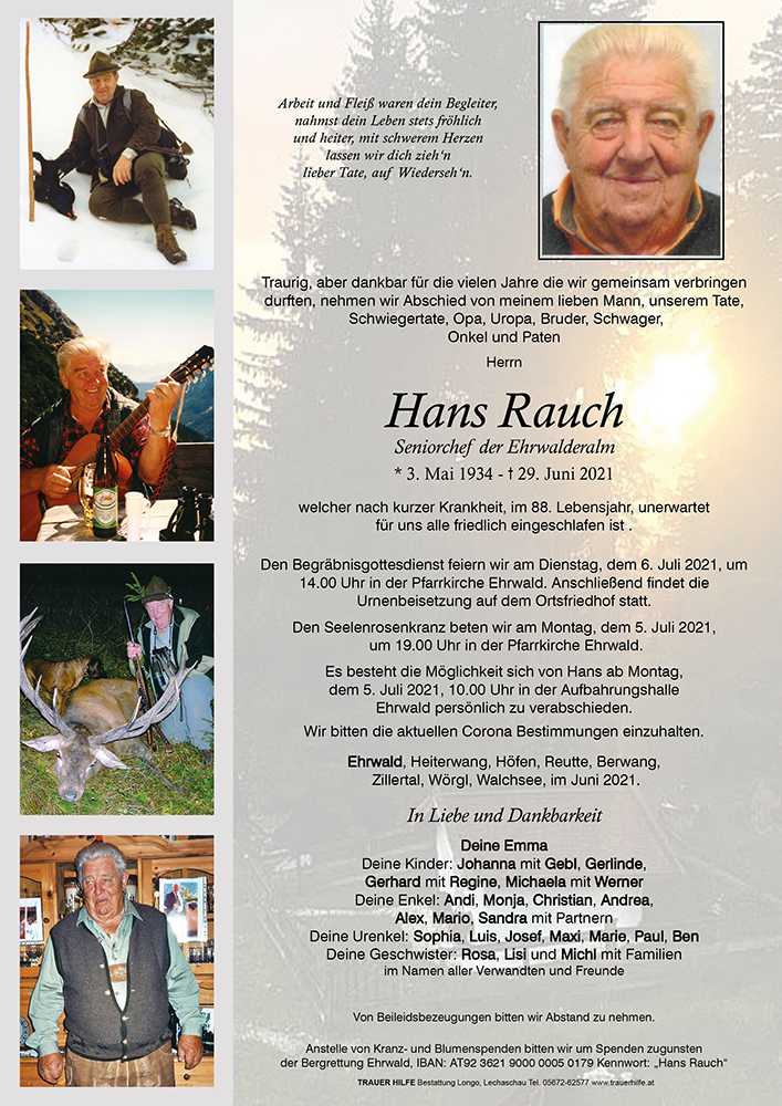 Nach einem erfülltem Leben, hat Hans nun seine letzte Reise angetreten.Wir wünschen ihm den ewigen Frieden und werden ihn als humorvollen Menschen in lieber Erinnerung behalten. Wir trauern mit euch Gerlinde und Hansi