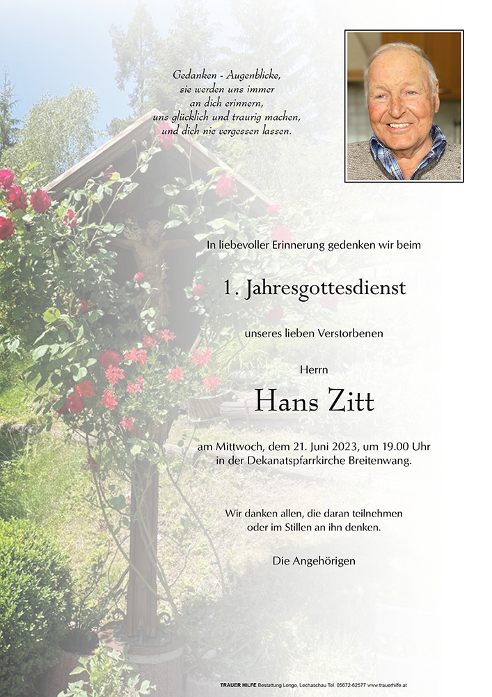 Kondolenzbuch für Hans Zitt