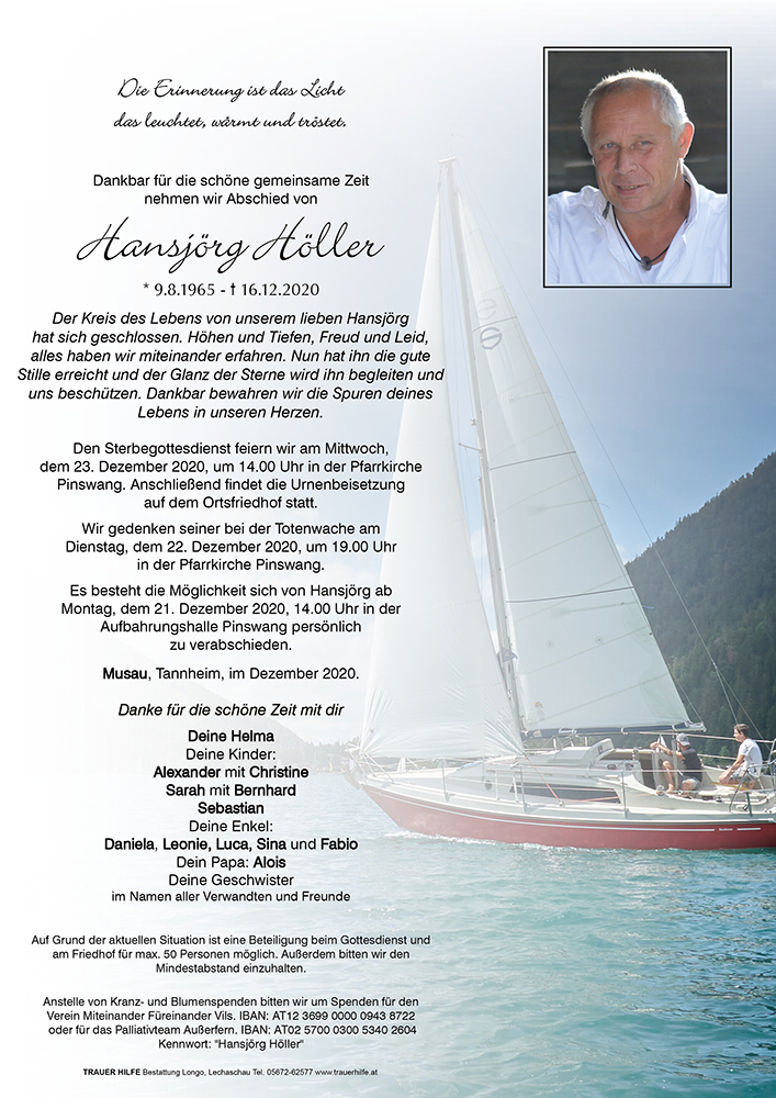 Wir haben Hansjörg als ganz besonders herzlichen, liebenswerten und hilfsbereiten Menschen am Plansee kennengelernt. Unser aufrichtiges Beileid und viel Kraft in diesen schweren Stunden! Lieber Hansjörg, wir werden dich sehr vermissen.