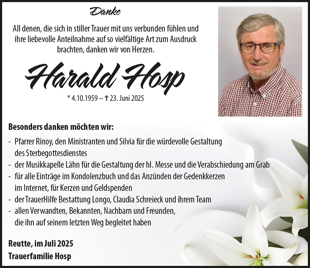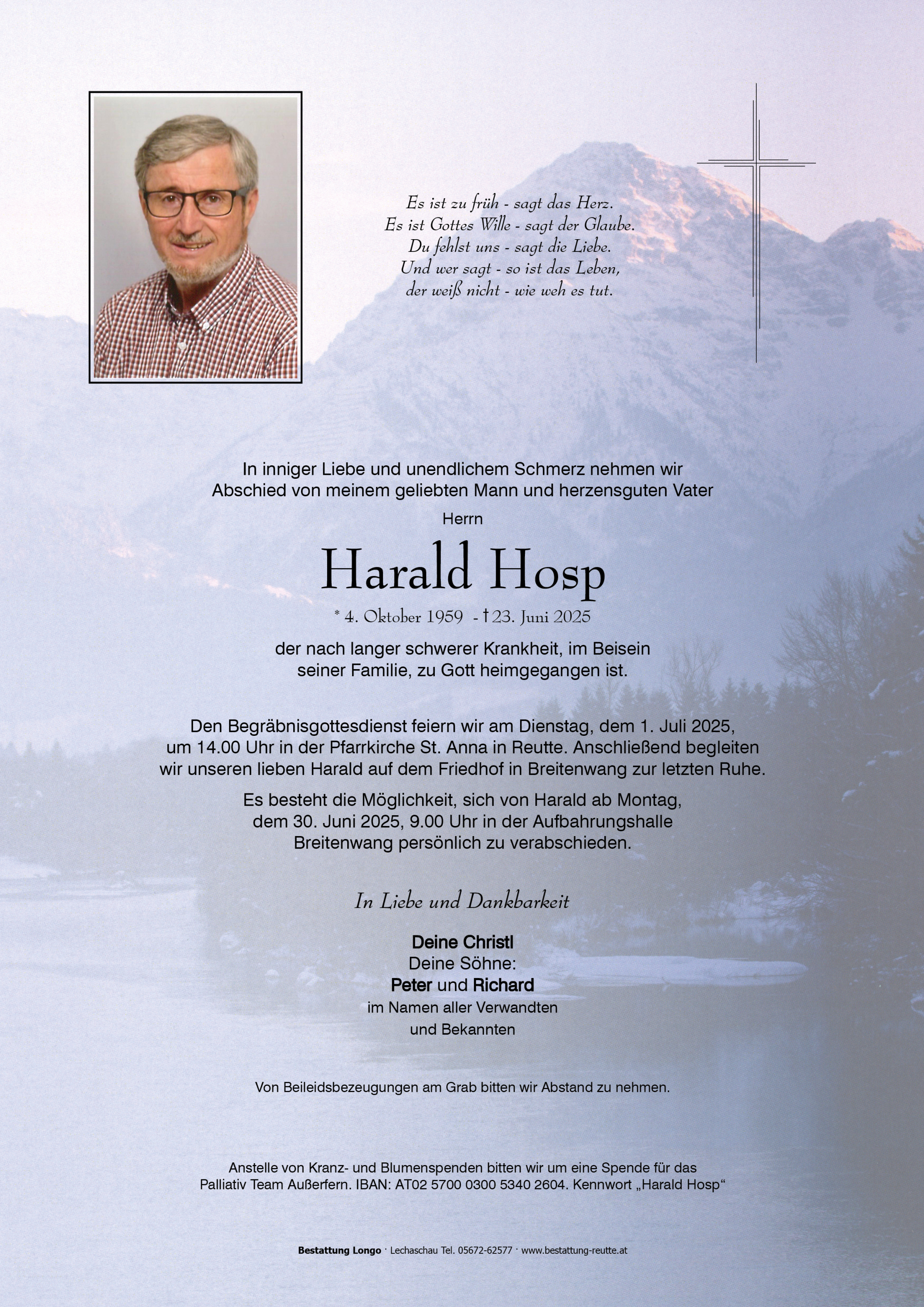 Es gibt Dinge die man nicht verstehen und Momente in den die Welt aufhört sich zu drehen. Wir werden Harald immer in guter Erinnerung behalten und wünschen Euch viel Kraft in dieser schweren Zeit der Trauer. Möchten Euch auf diesem Wege unsere aufrichtige Anteilnahme aussprechen und sagen pfiat di lieber Harald beschütze deine Lieben.
