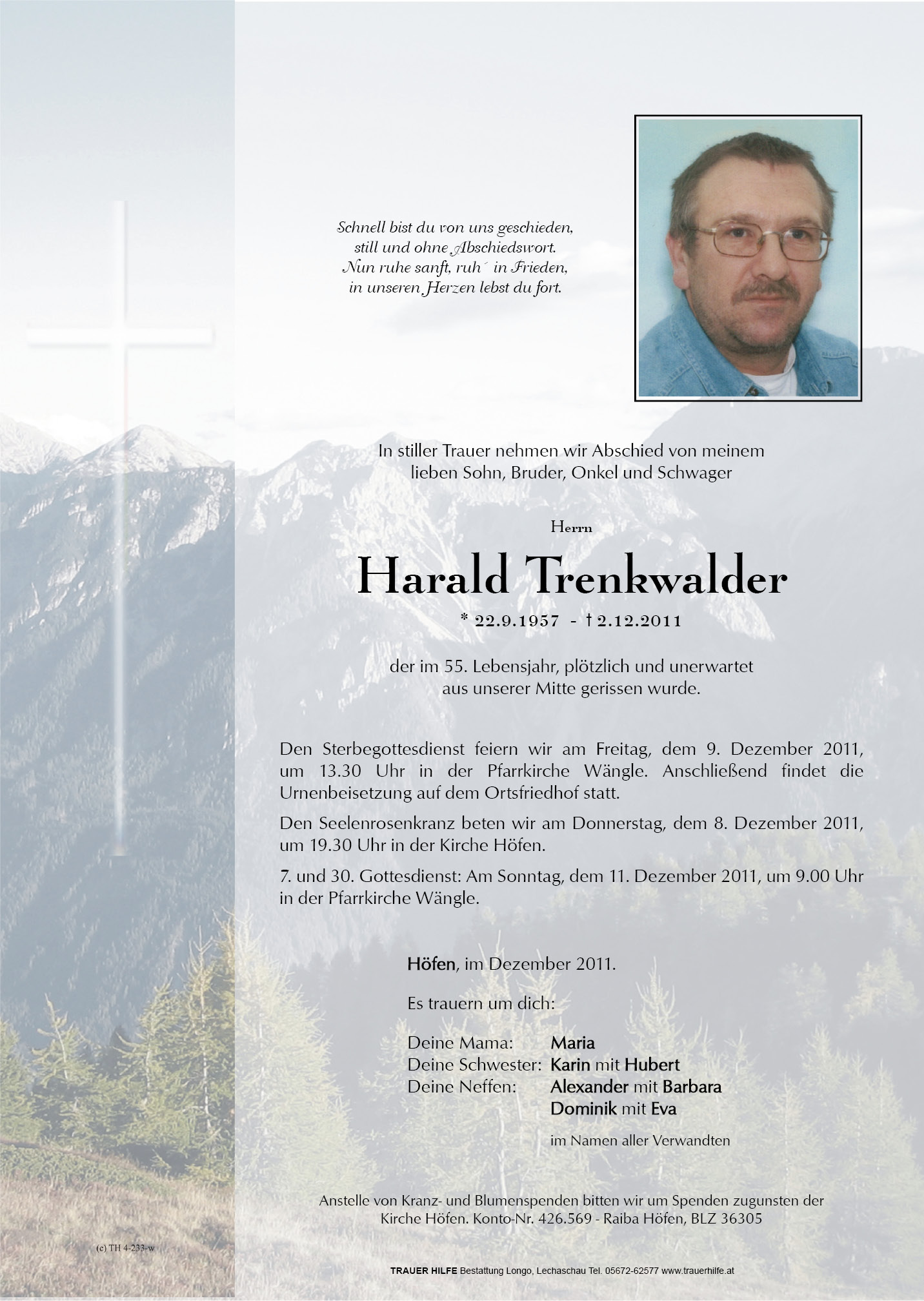 Aufrichtige Anteilnahme zum überaschenden Ableben vom Harald!