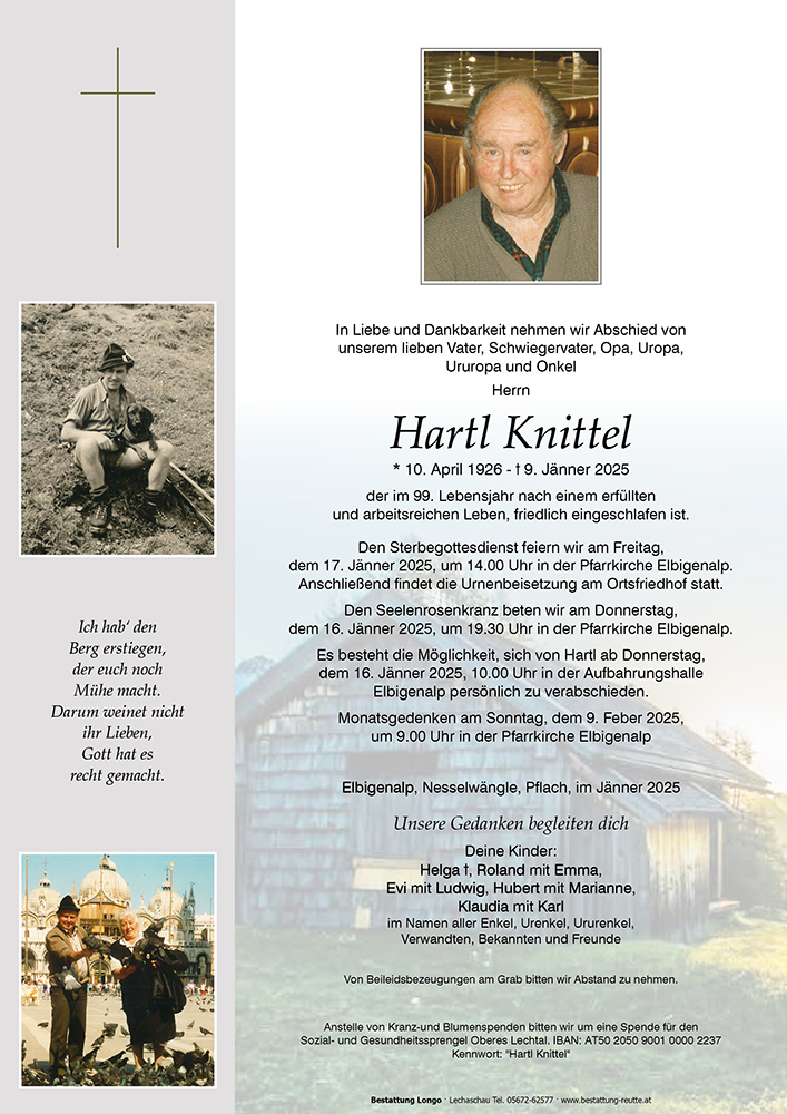 Kondolenzbuch für Hartl Knittel