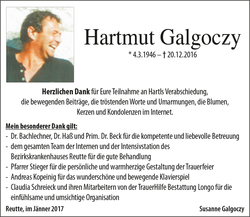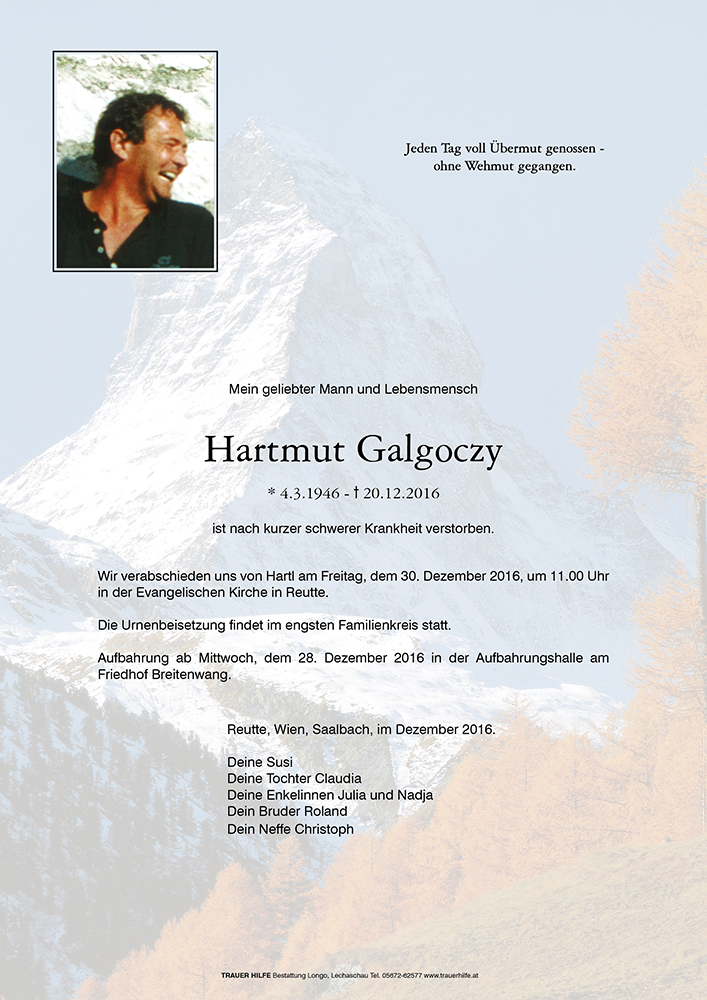 Kondolenzbuch für Hartmut Galgoczy