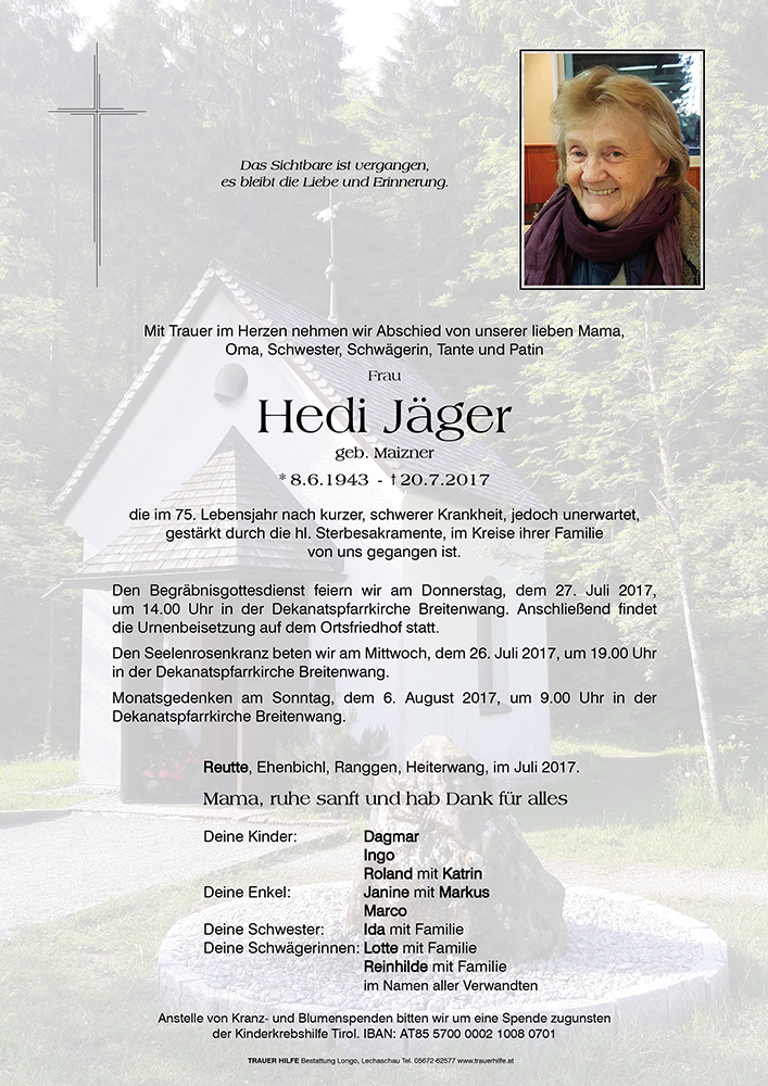 Kondolenzbuch für Hedi Jäger