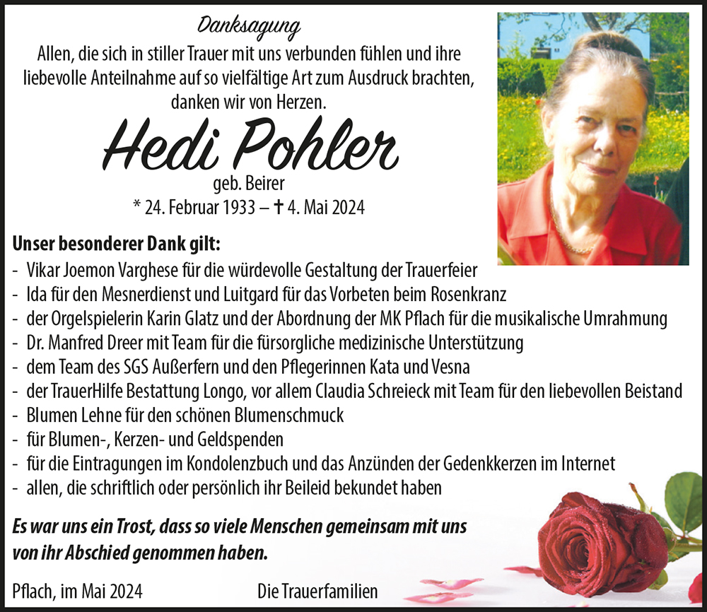 Was Euch allen weiterhin bleibt, sind viele schöne Erinnerungen an die mit Hedi gemeinsam verbrachte Zeit!