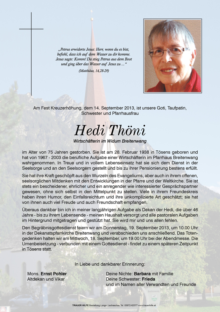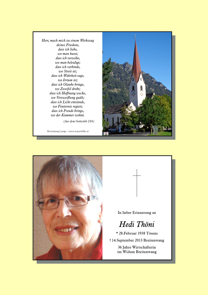 Kondolenzbuch für Hedi Thöni