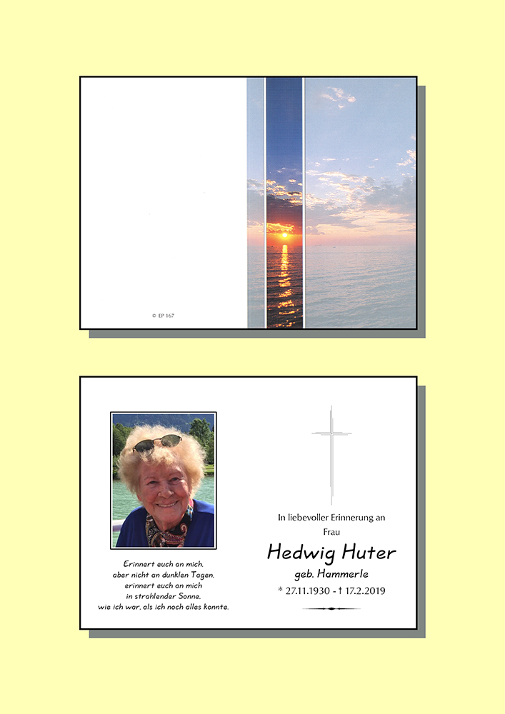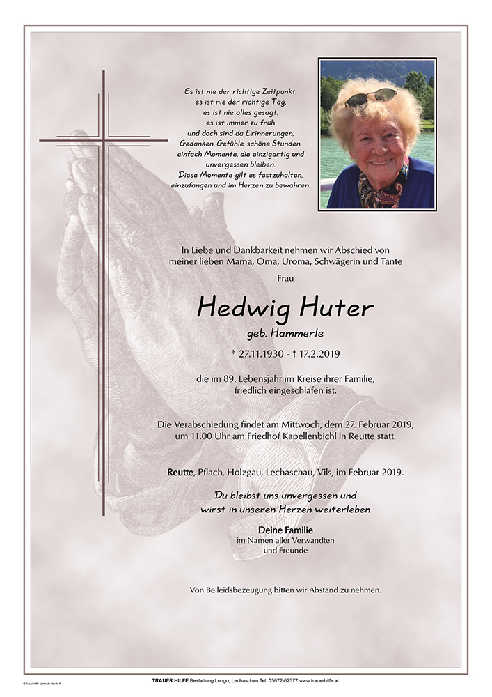 Kondolenzbuch für Hedwig Huter