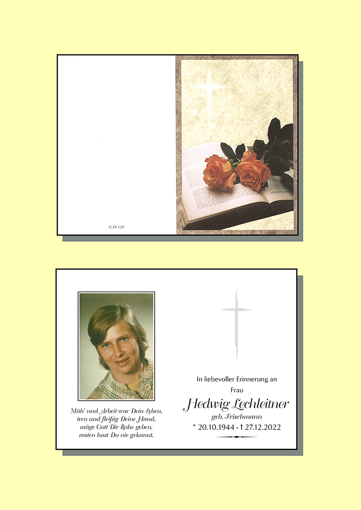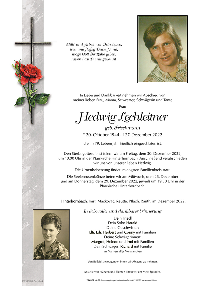 Kondolenzbuch für Hedwig Lechleitner