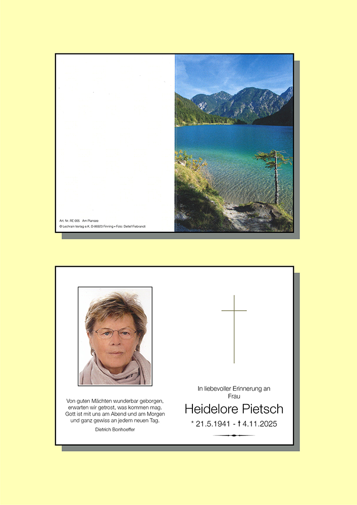 Frau Pietsch war nicht nur eine langjährige Kundin, sondern auch eine außergewöhnliche Frau, die mit ihrer Herzlichkeit und ihrem Lächeln alle um sie herum berührt hat. Ihr Verlust hinterlässt eine spürbare Lücke, und wir können uns nur ansatzweise vorstellen, wie schwer diese Zeit für Sie sein muss.