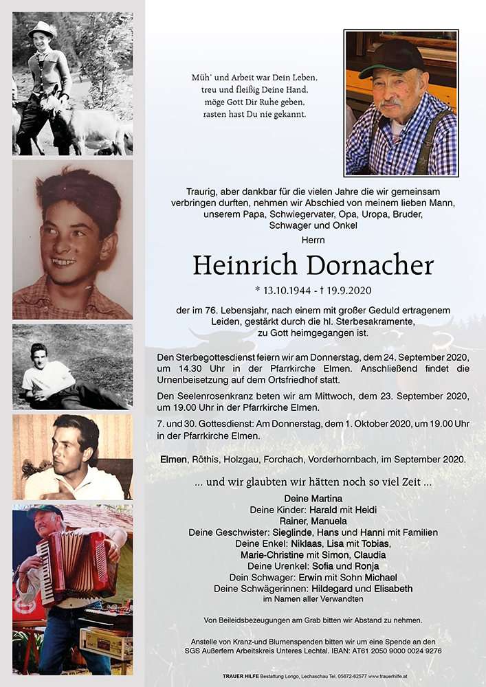 Kondolenzbuch für Heinrich Dornacher