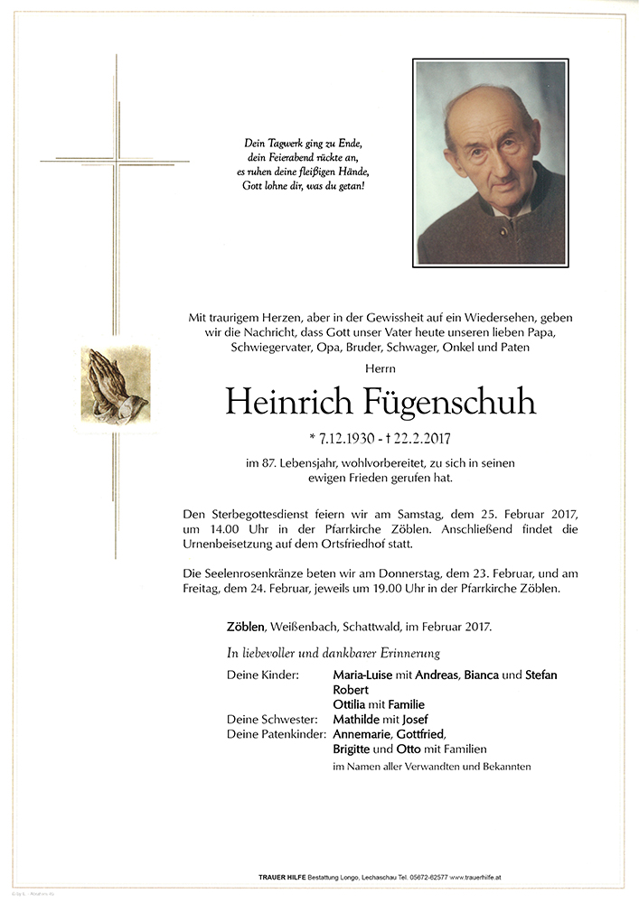 Er wird uns durch seinen bleibenden Platz in den Stammbäumen der Fügenschuh/Fiegenschuh-Familien immer