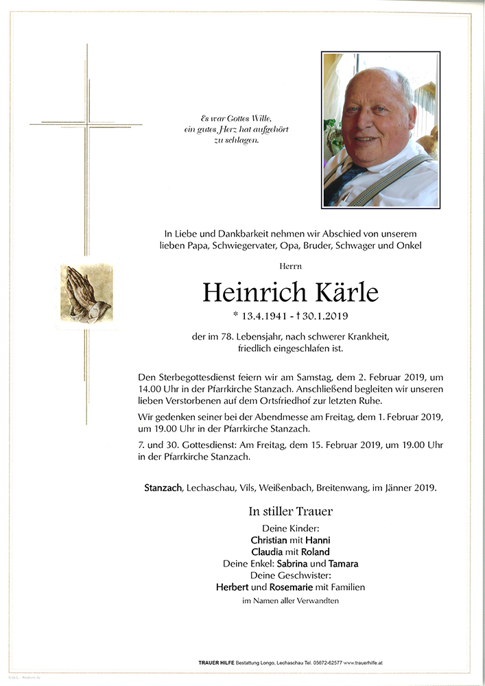 Aufrichtige Anteilnahme, Familie Sonnweber Winkler Helene, eine schöne Erinnerung an Heinrich, er hat uns Mädels Schifahren beigebracht, auch beim Bergwandern war er oft dabei und beim Fußball gab er auch sein Können, Heinrich Ruhe sanft!