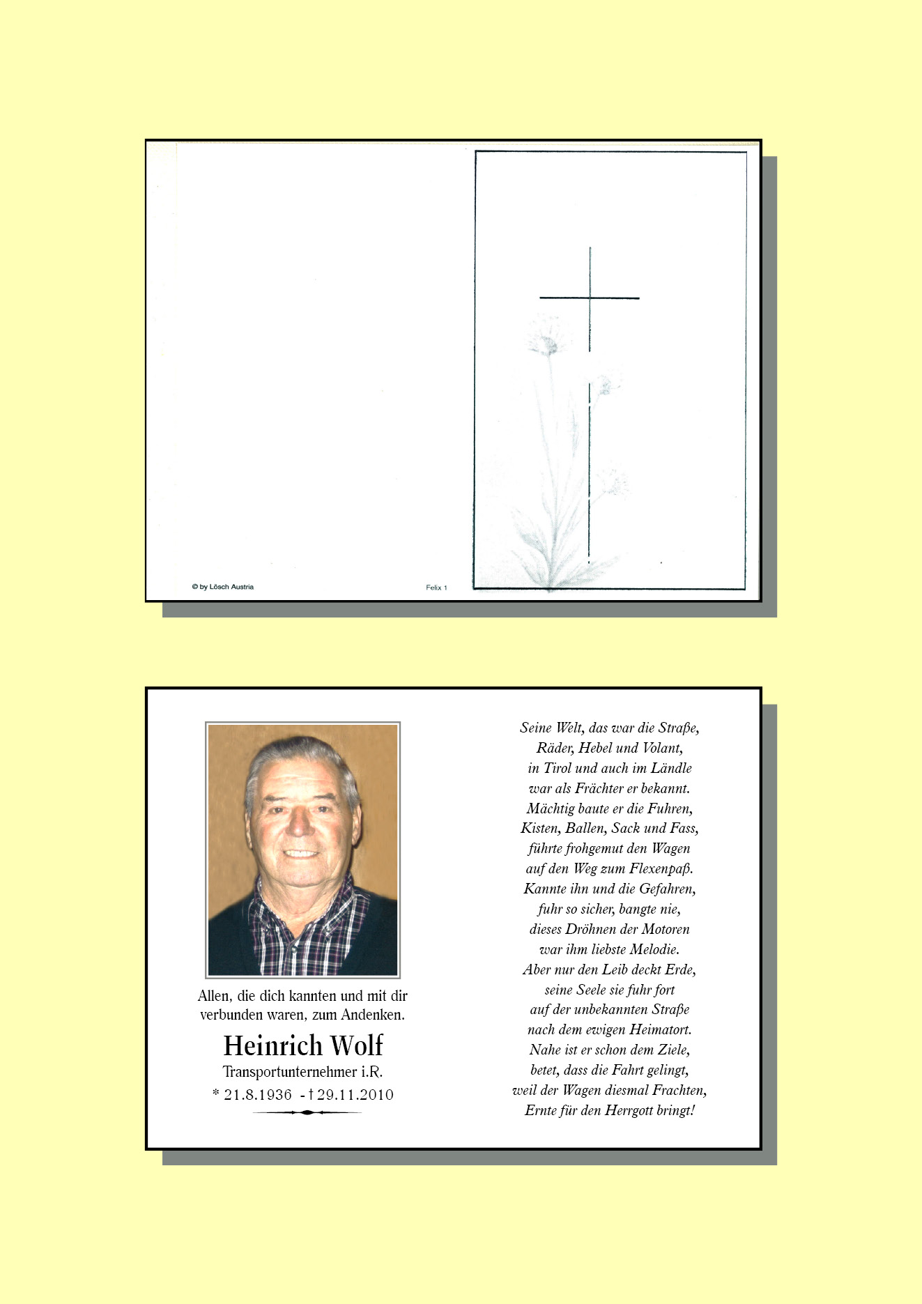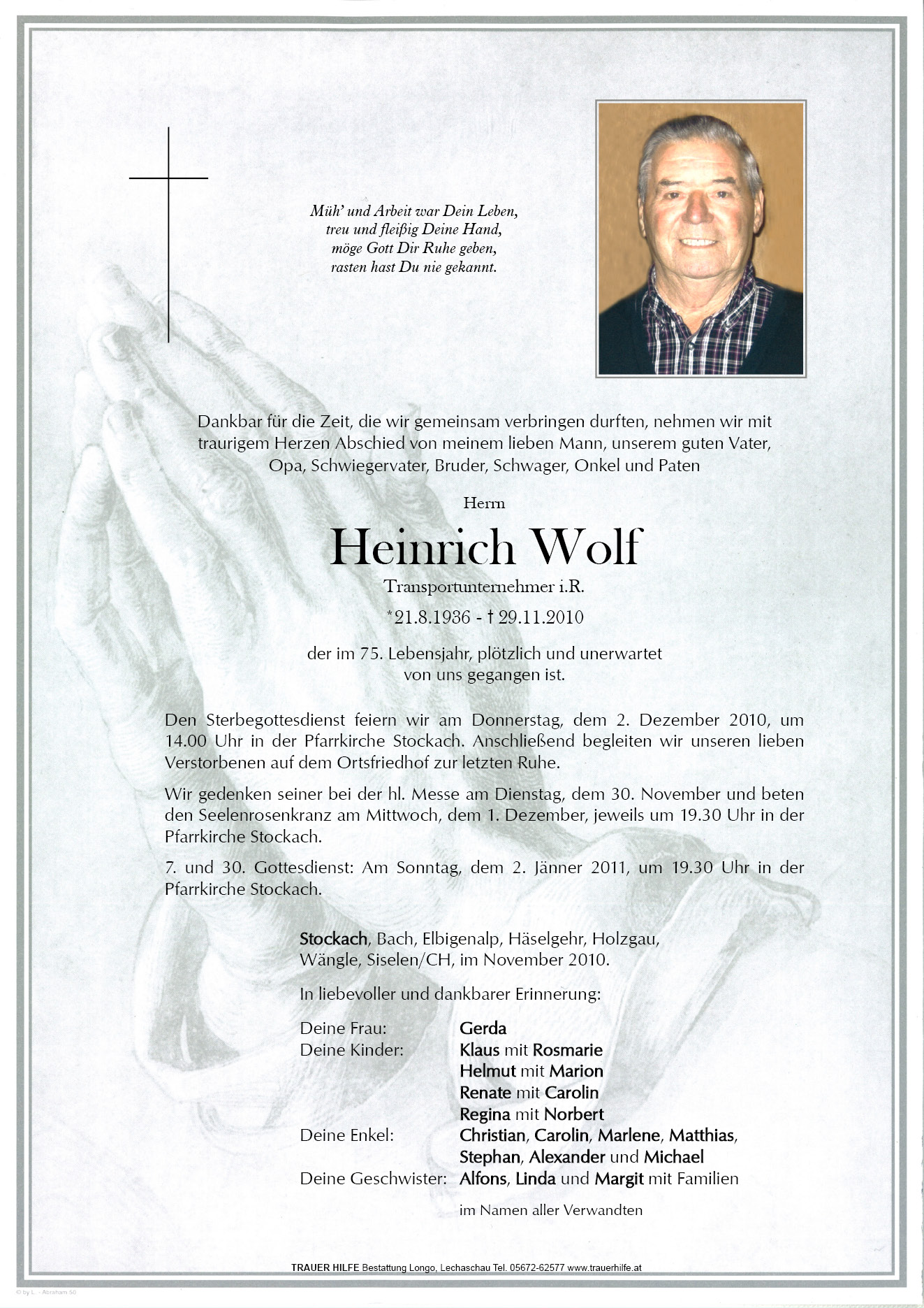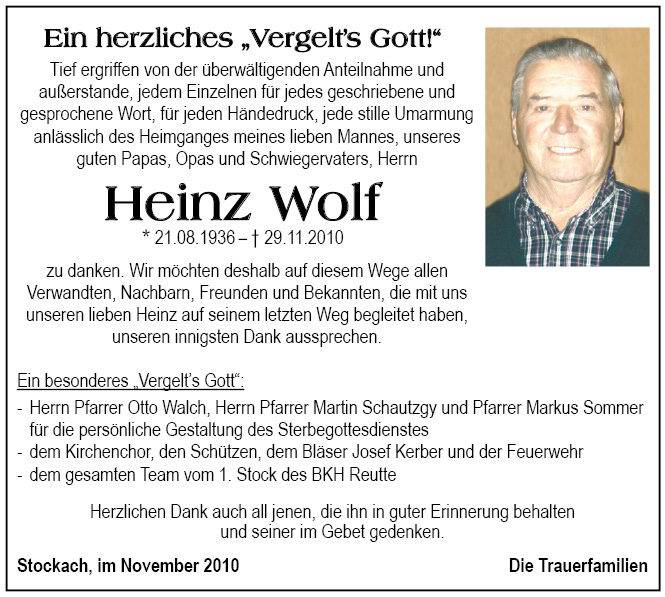13.12.1901 29.11.2010 Stockach Heinrich Wolf Action Parte Sterbebild Gedenkkerzen Kondolenzen Danksagung Parte Sterbebild Gedenkkerzen Kondolenzen Danksagung Parte herunterladen Sterbebild herunterladen Gedenkkerzen für Heinrich Wolf 9 Einträge Kerze anzünden in lieber Erinnerung In lieber Erinnerung Elisabeth Matreux Elisabeth Matreux Elisabeth Matreux Marlen, Dietmar & Fabio Marcel Marlen, Dietmar & Fabio Uhrmacher s Erich Ihre Gedenkkerze fürHeinrich Wolf Ihr Name* Farbe auswählen Ihre Nachricht oder Name* E-Mail-Adresse* Mit dem Klicken auf "Kerze anzünden" erklären Sie sich mit unseren Datenschutzbestimmungen einverstanden. Kondolenzbuch für Heinrich Wolf 1 Eintrag Kondolenz verfassen Wir sind nur Gast auf Erden und wandern ohne Ruh‘ mit mancherlei Beschwerden der ewigen Heimat zu. Ruhe in Frieden 10.10.2020 um 11:49 Uhr Ihr Abschiedsgruß an Heinrich Wolf Ihr Name* E-Mail-Adresse* Ihre Nachricht* Mit dem Klicken auf "Gruß absenden" erklären Sie sich mit unseren Datenschutzbestimmungen einverstanden. Danksagung herunterladen