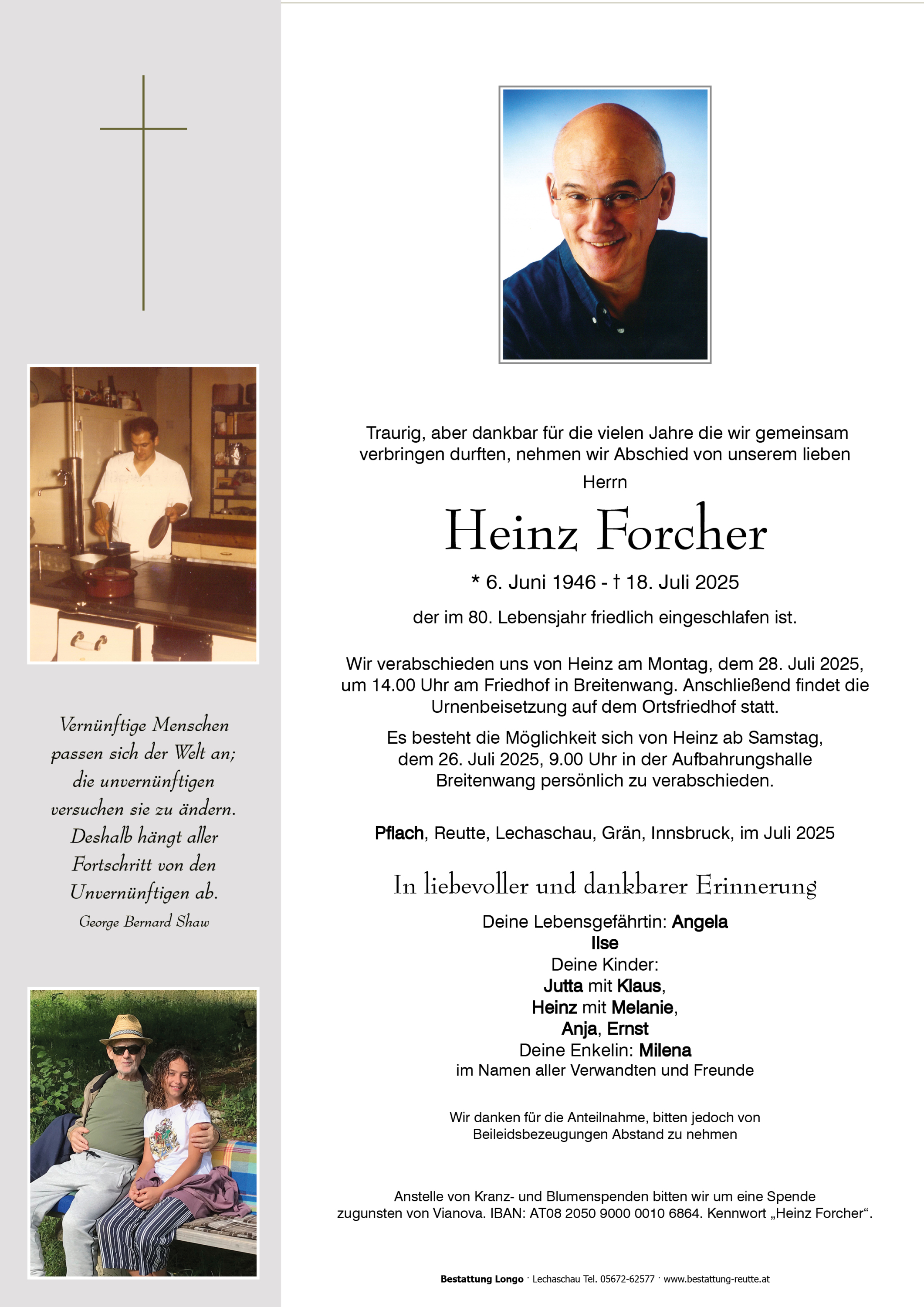 Mit dem Verlust eines geliebten Menschen verliert man viel, aber niemals die schönen Erinnerungen an die gemeinsam verbrachte Zeit! In unseren Herzen tragen wir Heinz weiter!