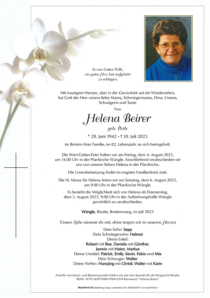 Kondolenzbuch für Helena Beirer