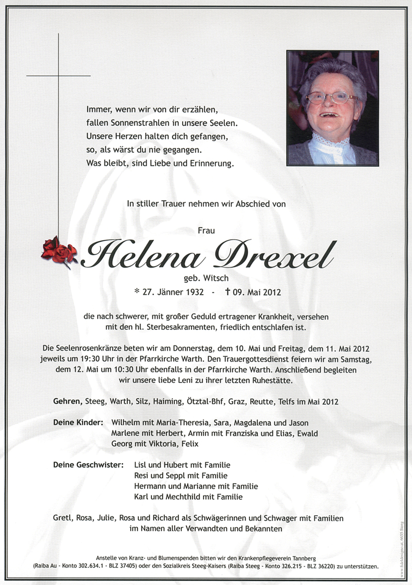mit Bedauern haben wir vom Tode euerer liebe Mutter gehört und wünschen euch viel Kraft in dieser schweren Zeit