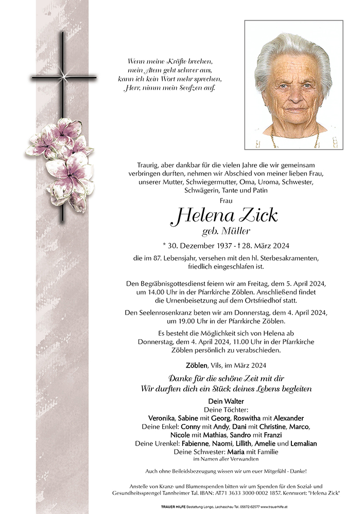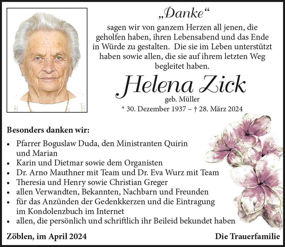 Kondolenzbuch für Helena Zick