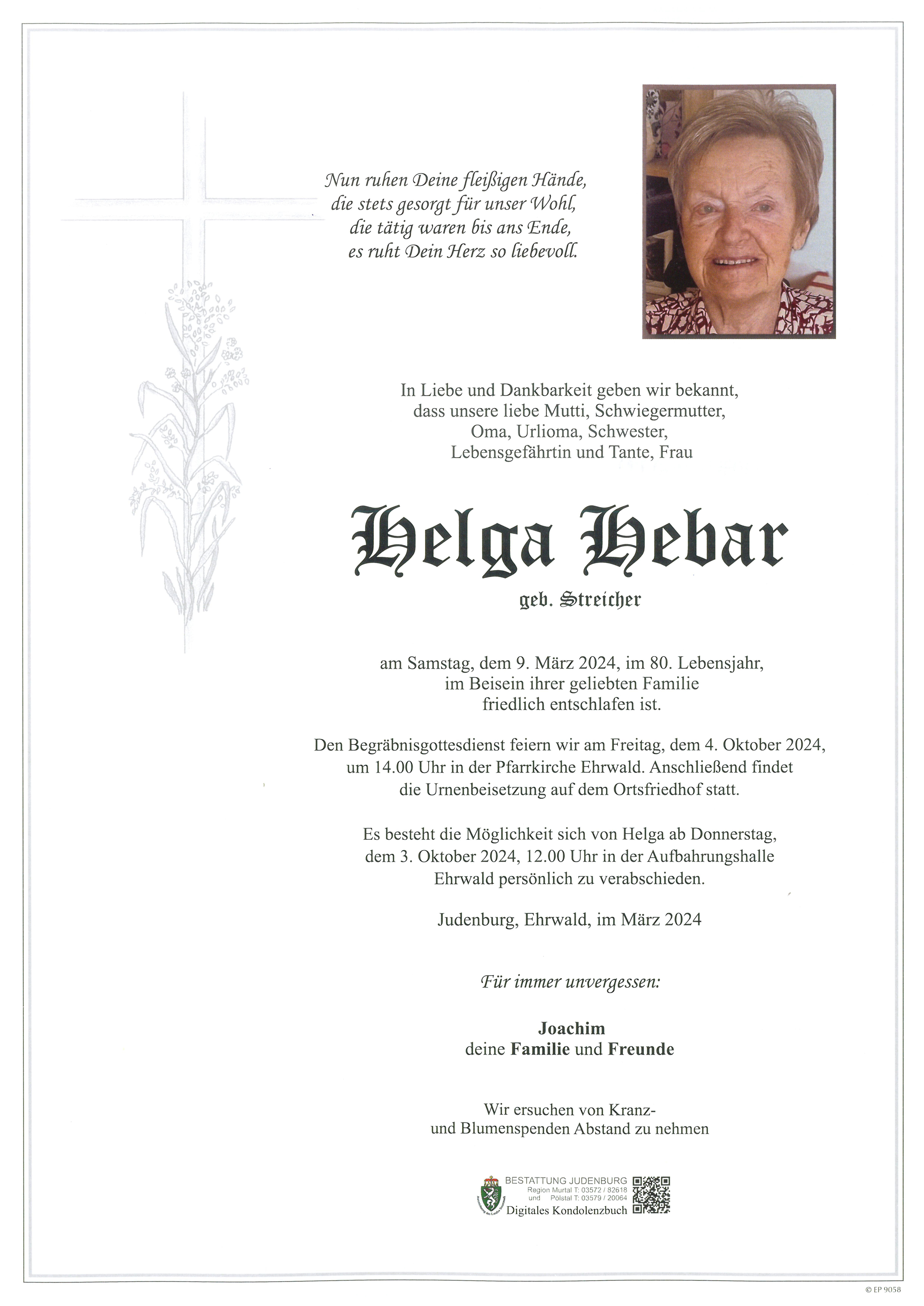 Kondolenzbuch für Helga Hebar
