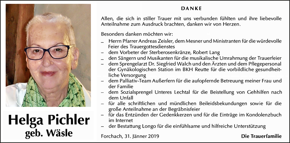 Kondolenzbuch für Helga Pichler