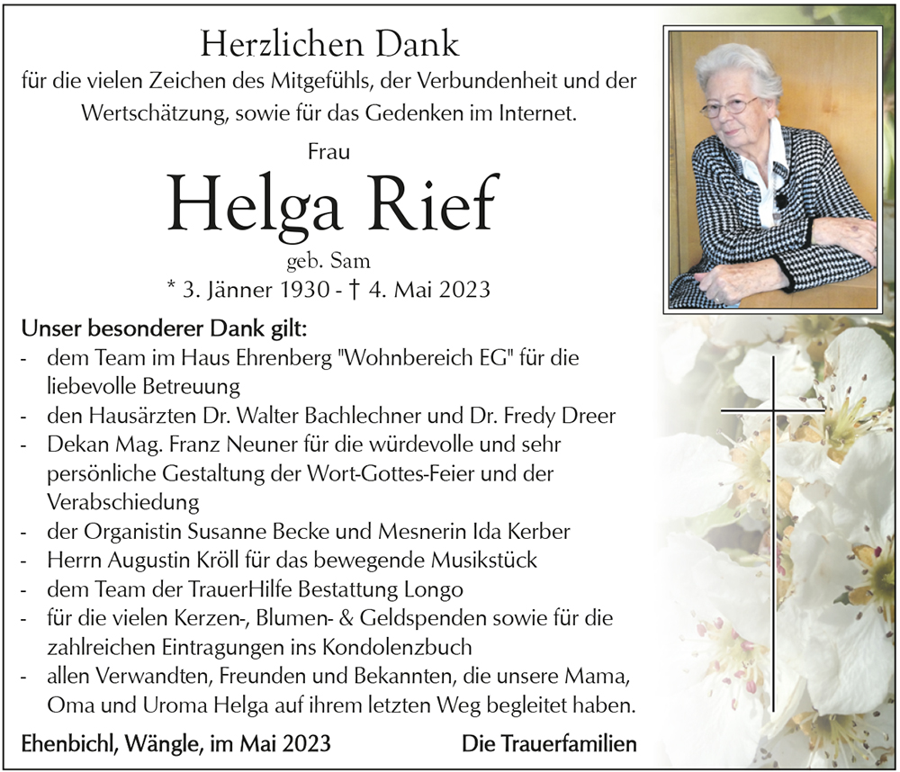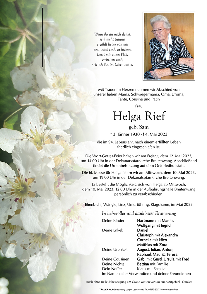 Kondolenzbuch für Helga Rief