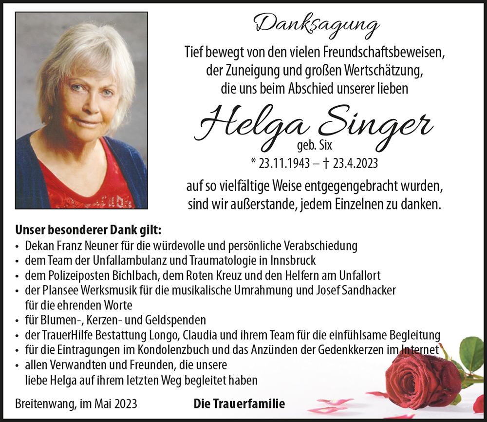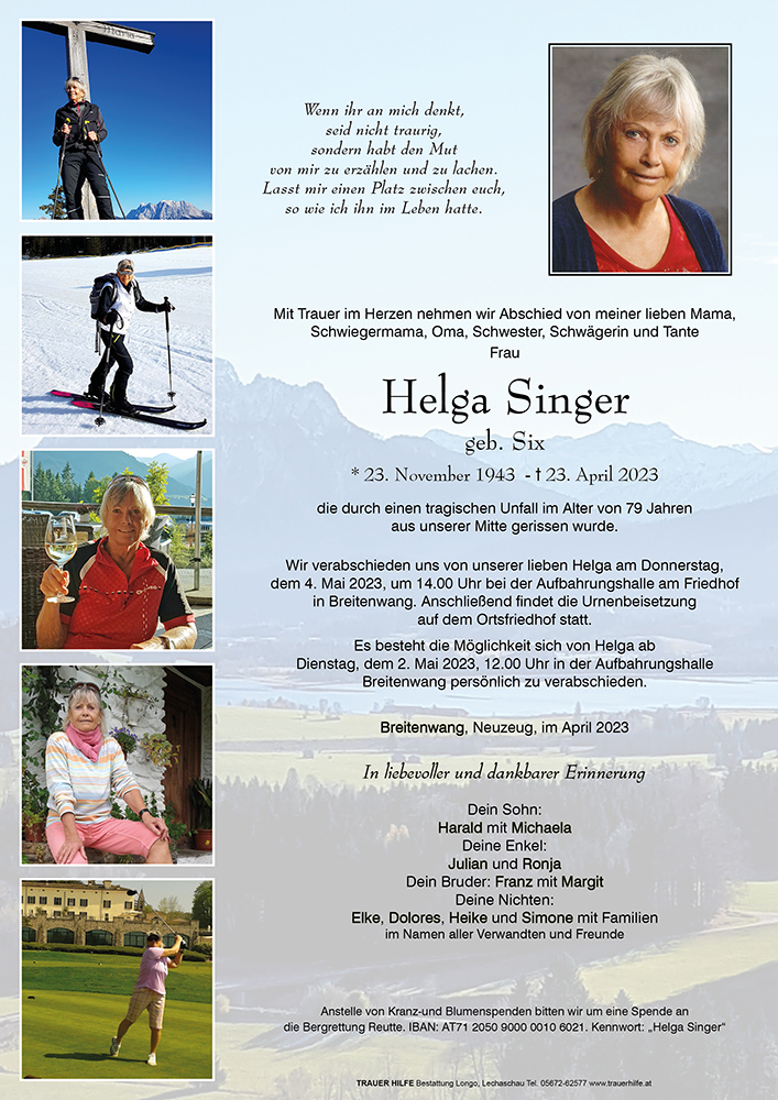 Kondolenzbuch für Helga Singer