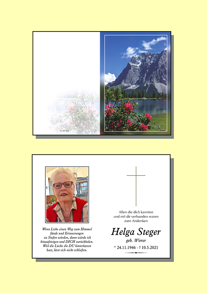 Aufrichtige Anteilnahme und in stillem Gedenken an Helga