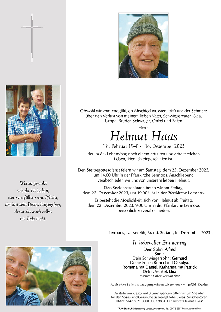 In stillem Gedenken und mit Aufrichtige Anteilnahme, dein Bruder Erwin