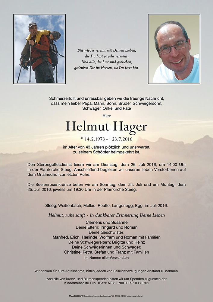 Es ist schwierig die richtigen Worte in diesen schweren Stunden zu finden. Helmut war ein gewissenhafter und sehr verlässlicher Mitarbeiter und wir werden ihn in dankbarer Erinnerung behalten.