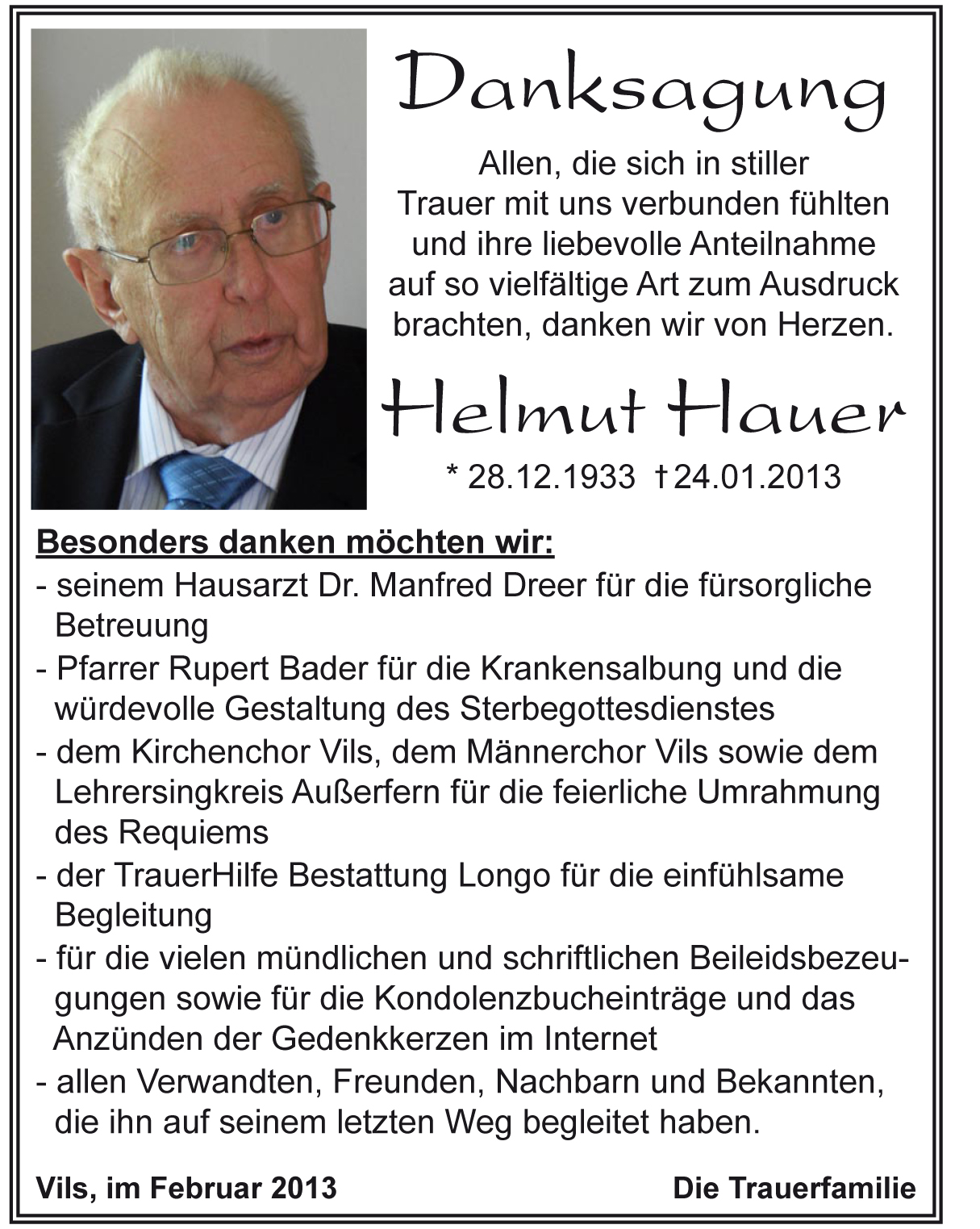 Meine aufrichtige Anteilnahme am Heimgang von Helmut.