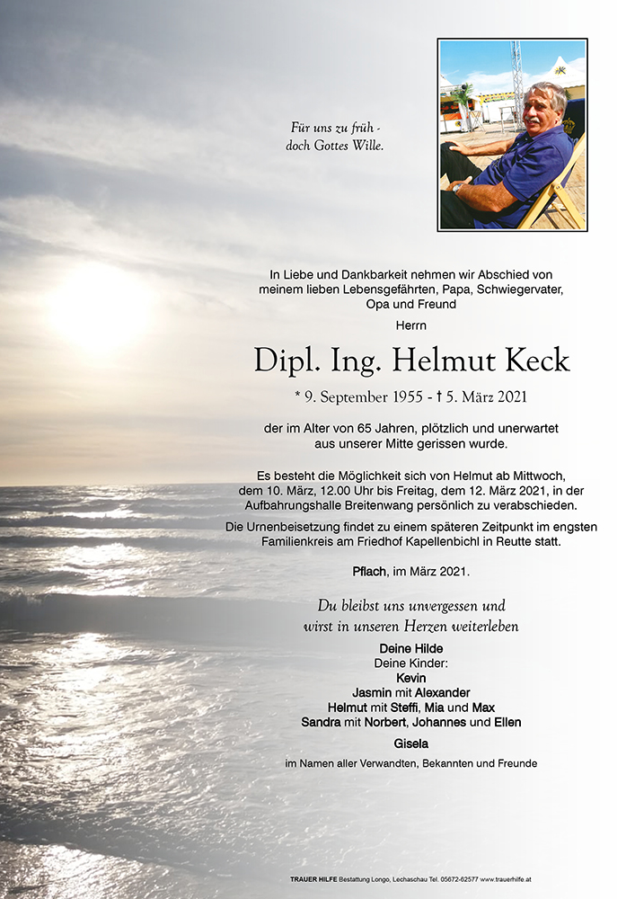 Lieber Helmut, liebe Sandra mit Trauerfamilie,