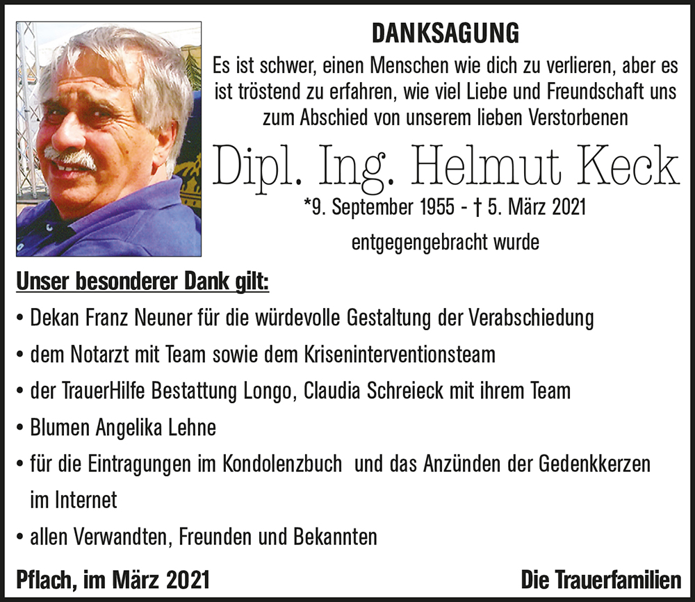 Zum plötzlichen Ableben von Helmut entbieten wir euch unsere herzlichste Anteilnahme und wĂŒnschen euch viel Kraft fĂŒr die kommende schwere Zeit.