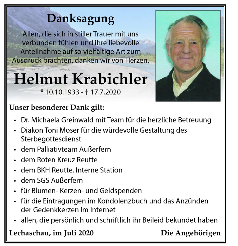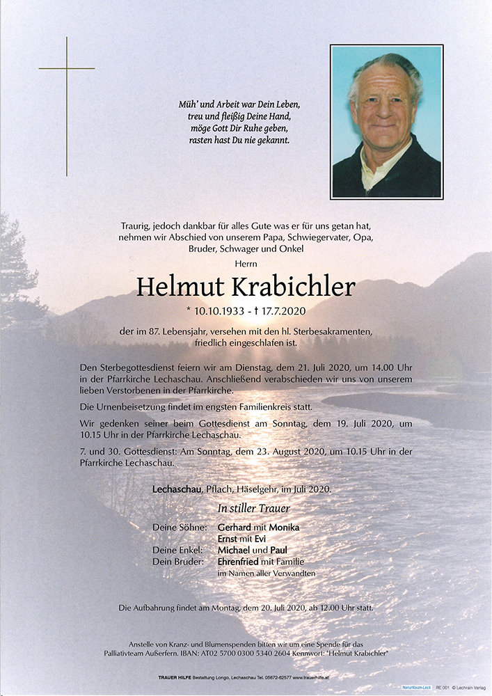 Kondolenzbuch für Helmut Krabichler