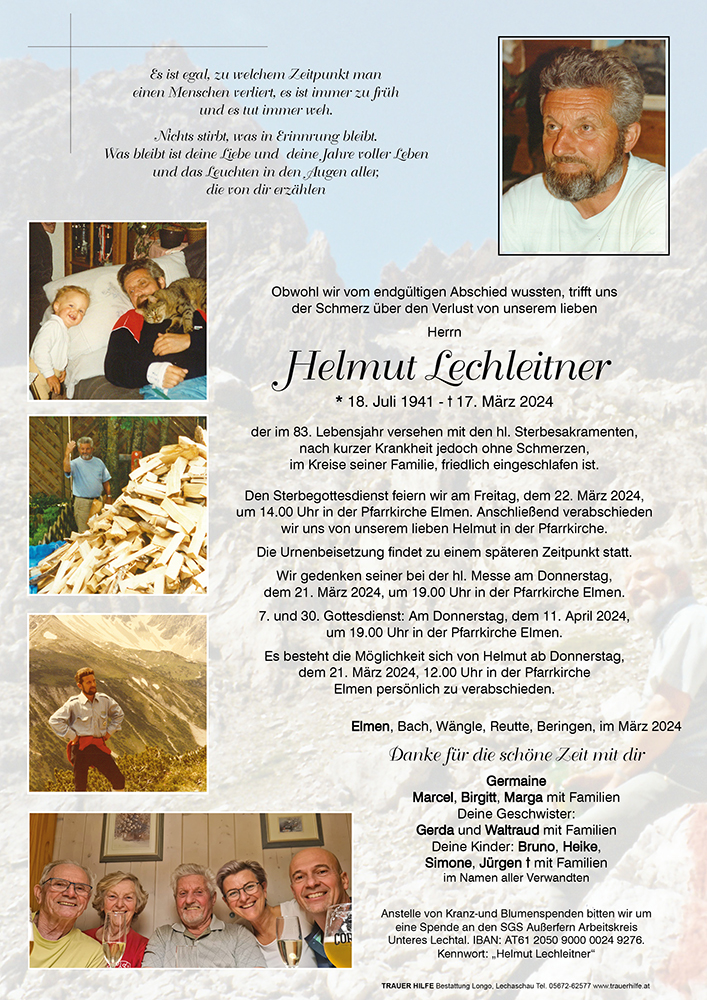 Helmut als Familienvater, Opa, Schwiegervater, Uropa, etc., ganz fest umschlingt.