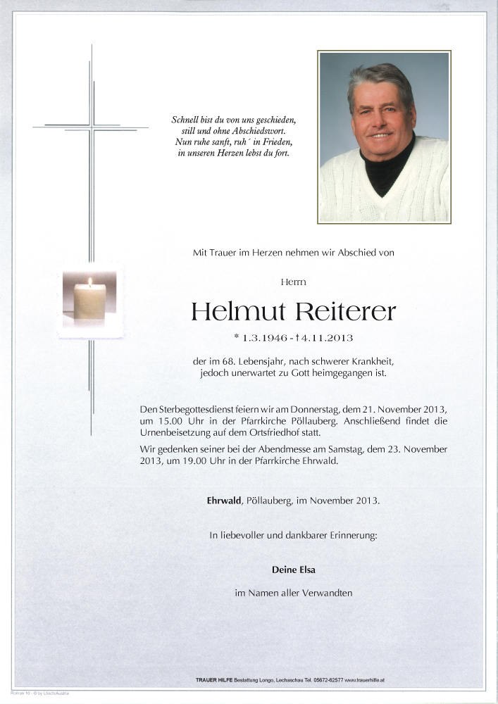Kondolenzbuch für Helmut Reiterer